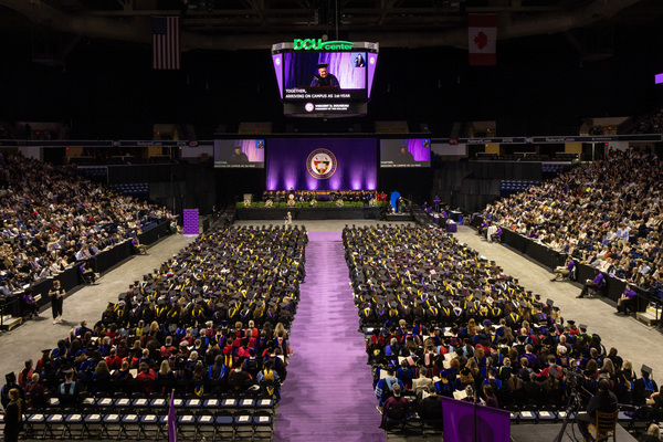 Holy Cross celebrated its 179th Commencement on Friday, May 23 at the DCU Center in Worcester. Dr. Linda LeMura, president of Le Moyne College and the first female layperson to be named president of a Jesuit institution of higher education in the United States, delivered the address to the 733 seniors graduating this year and their families. In addition to LeMura, Holy Cross also awarded an honorary degree to Sister Barbara Rogers, RSCJ, a longtime leader of the Newton Country Day School of the Sacred Heart.